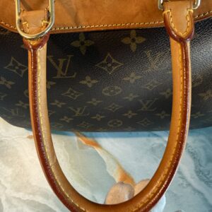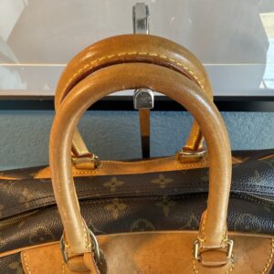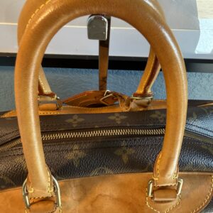 ❤️Leather is a honey patina and some stains. Handles have no cracks, some stains and marks.