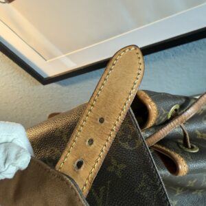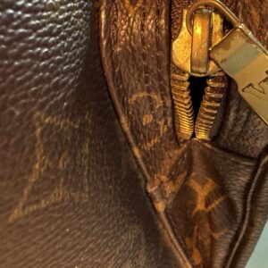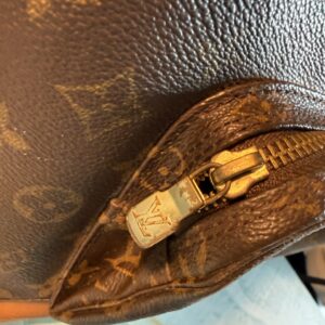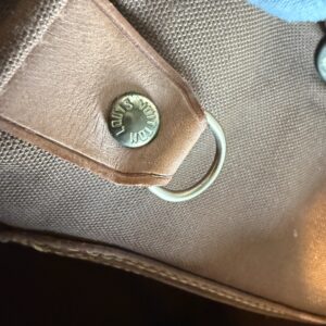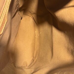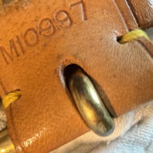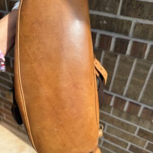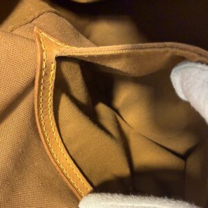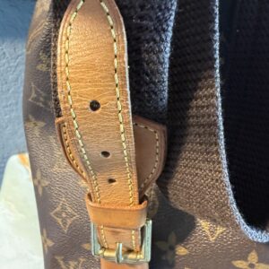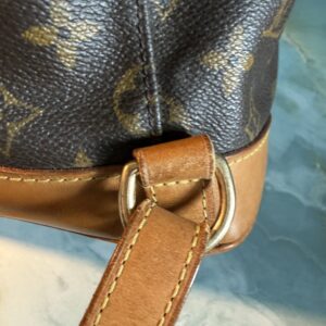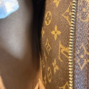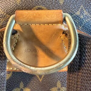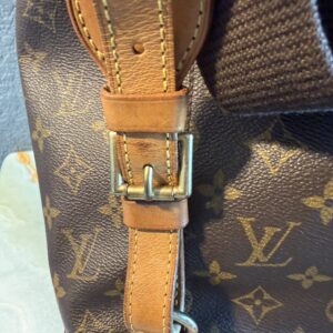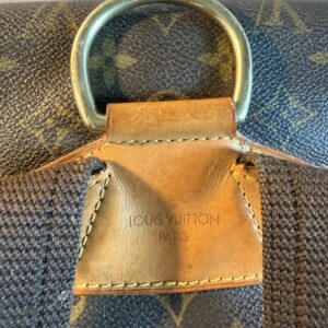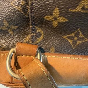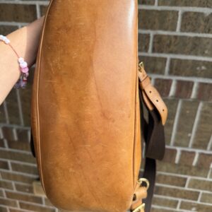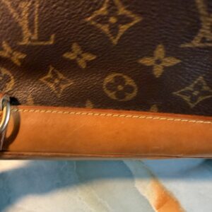 ❤️Vachetta is a medium/darker patina. There are some stains and surface scratches on leather on bottom and on bottom periphery. Top vachetta leather has no cracks. Leather straps have superficial surface cracks/wear on the sides from the hardware. Chaps have some wear on the sides from the hardware. Main opening belt has no cracks but has wrinkling and staining
